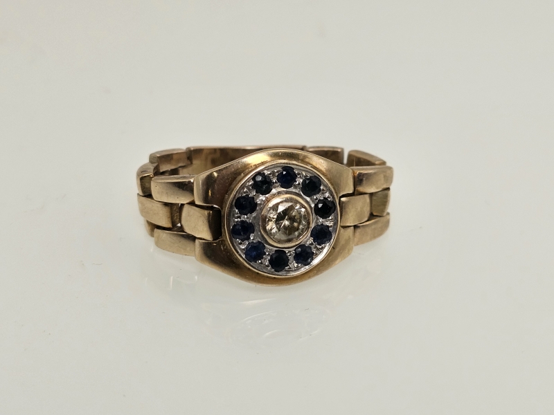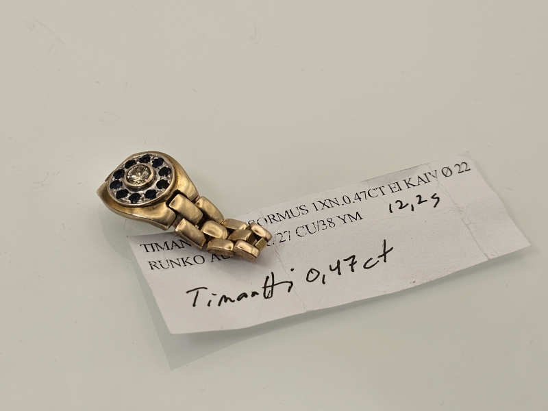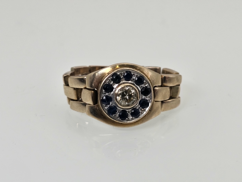 #1268 Noin 8k kultainen sormus n. 0,47ct timantilla ja sinisafiireilla, 12,22g
