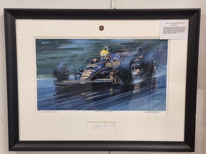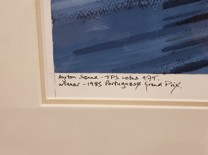 Sennan ensimmäinen voitto 1985 Portugal GP. Kehyksineen 93cm x 70cm