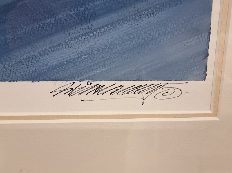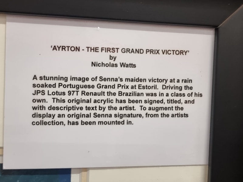 #805 Nicholas Watts signeerattu akryylimaalaus Ayrton Sennan nimikirjoituksella