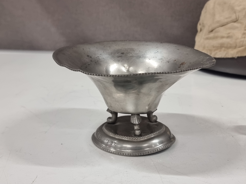 #1719 - Erä militaria -esineitä: Kypärä hupulla, Talvisodan muistoreliefi, Teknikum -pamppu ym.
