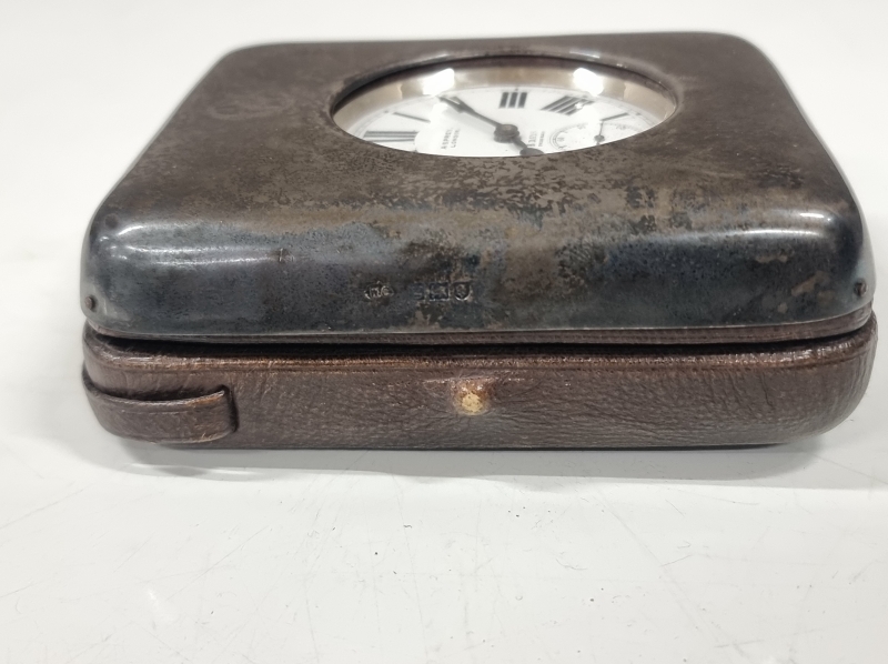 #1242 Harvinainen hopeinen Asprey 8 days taskukello alkuperäisellä kotelolla. 935h brutto 293g. Kotelon paino 183g