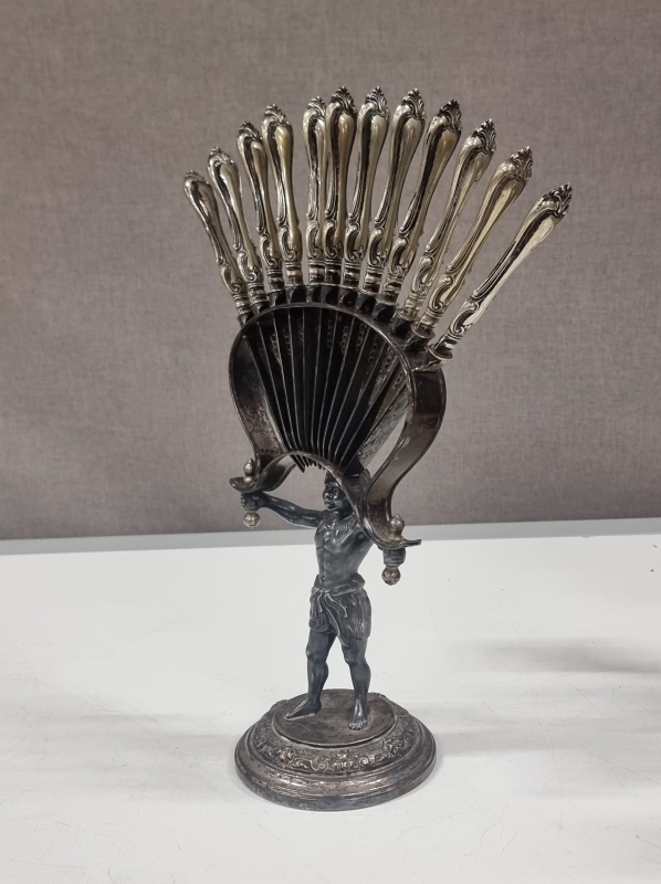 #2250 Erä hopeoituja esineitä: Veitsiteline, kynttilänjalka ym.