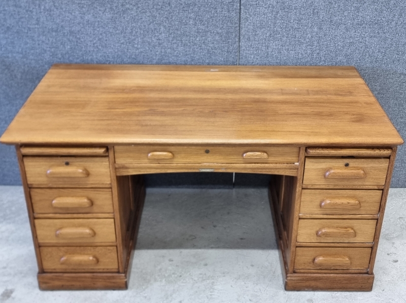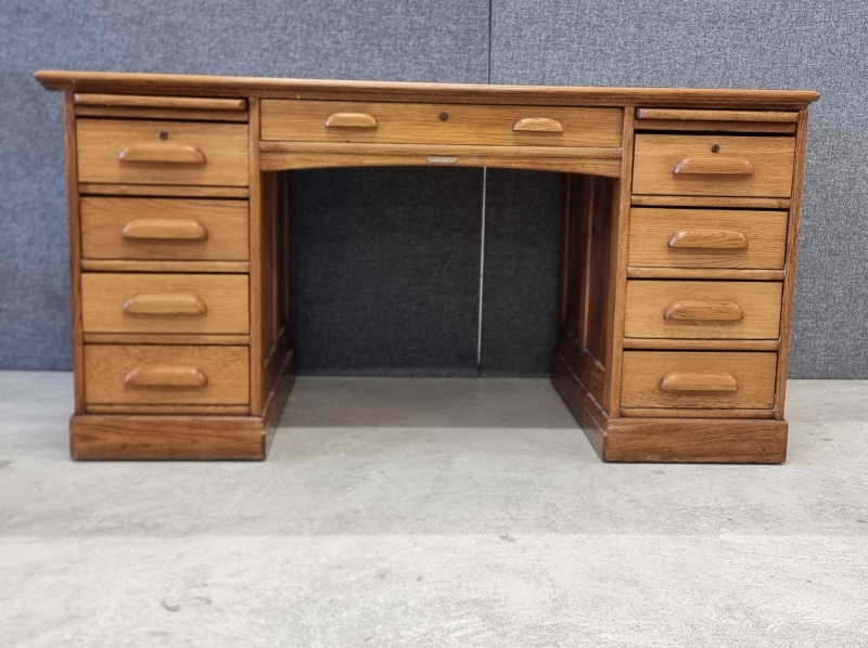 #1855 - Billnäs kirjoituspöytä laatikostoilla. Ylin laatikko lukitsee alemmat.