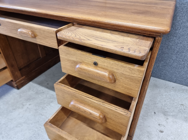 #1855 Billnäs kirjoituspöytä laatikostoilla. Ylin laatikko lukitsee alemmat.