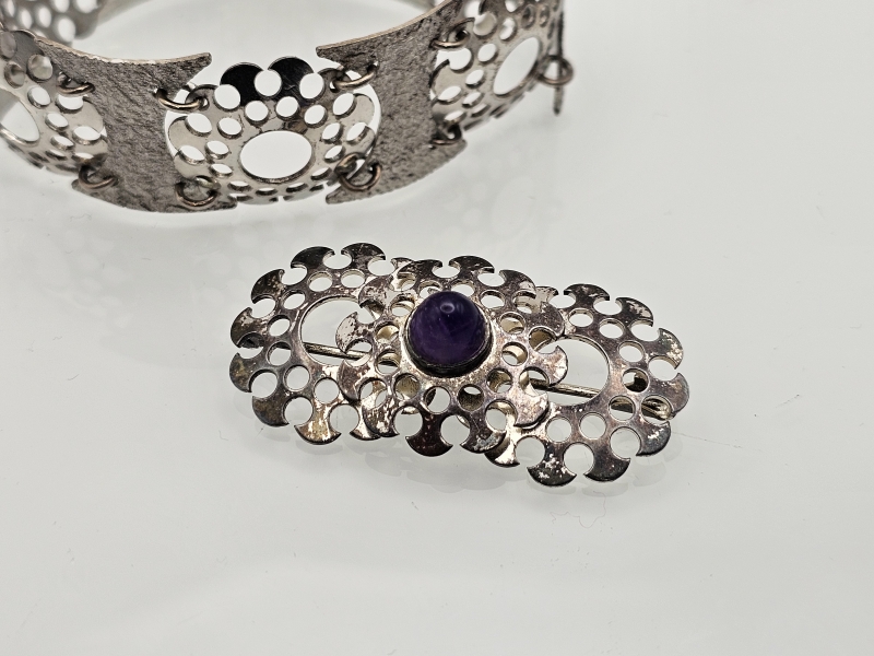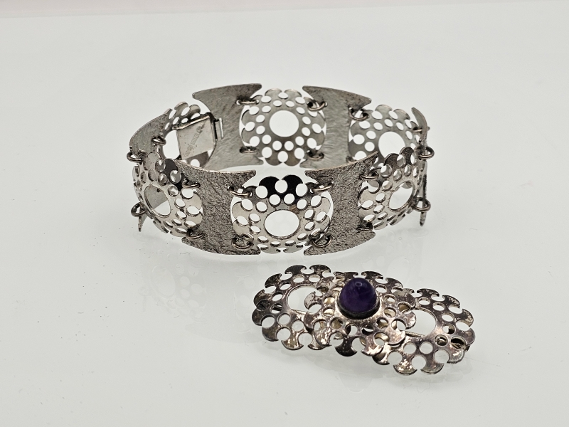 #1308 - Kotimainen hopeinen rintakoru ja rannekoru vuodelta 1969