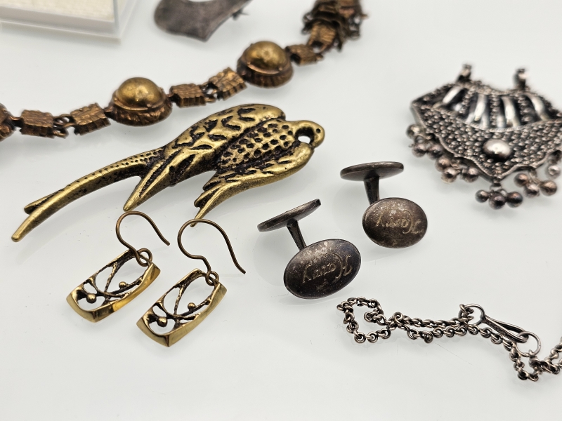 #1310 - Erä hopea- ja pronssikoruja: Mm. Bohemme -sormus, Jan E. von Krogh rintakoru