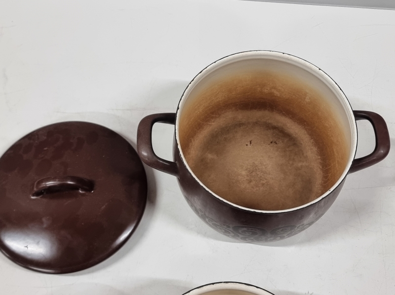 #2086 2kpl valurautaista pataa, mm. Antti Nurmesniemi, Lentävälautanen + 2kpl Finel kattilaa