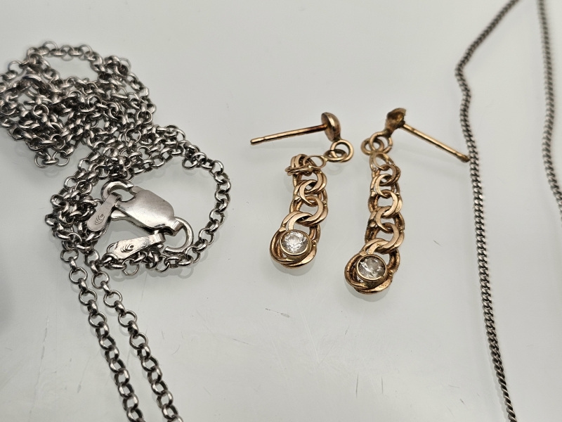 #1334 14k kultaiset korvakorut [1,18g] + hopeaketjut ym.