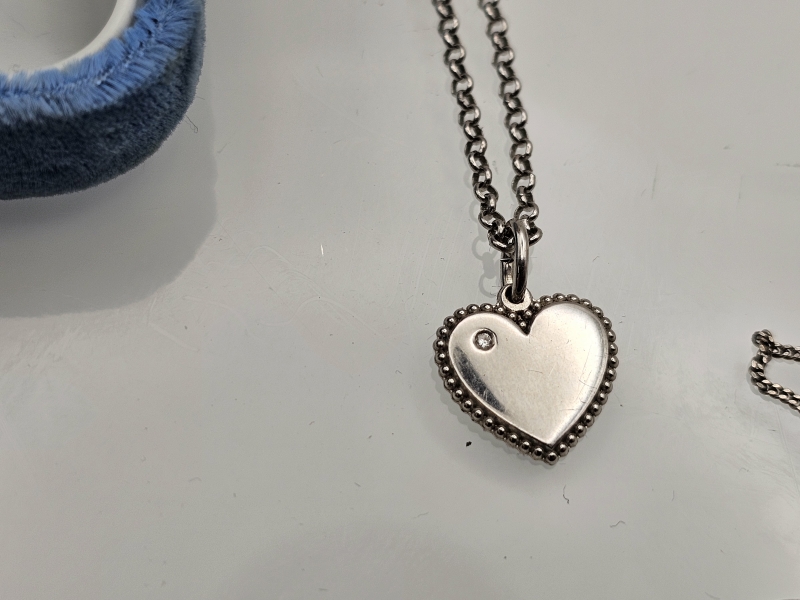Kullan bruttopaino 1,18g. Ei taustoja. Hopeasydämessä timantti