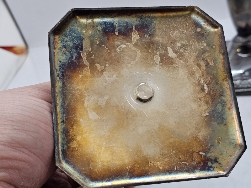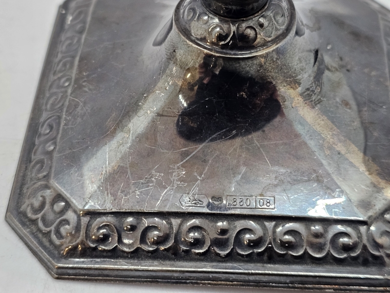 #1346 2kpl hopeisia kynttilänjalkoja, 830h, br. 262g