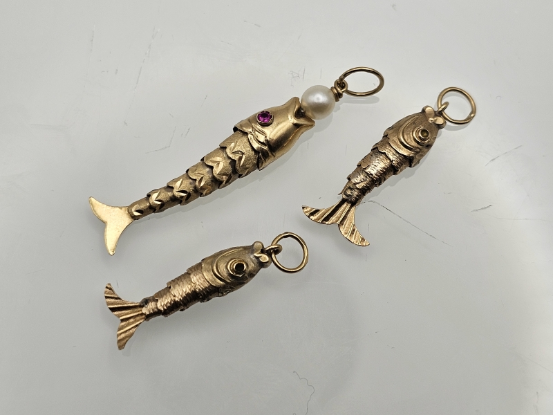 #1402 1+2kpl 14k kultaisia kala-riipuksia, 4,54g