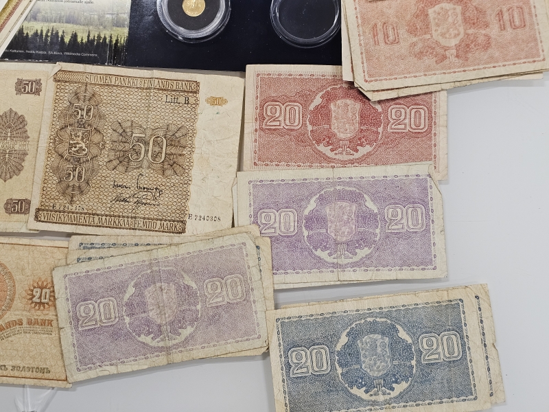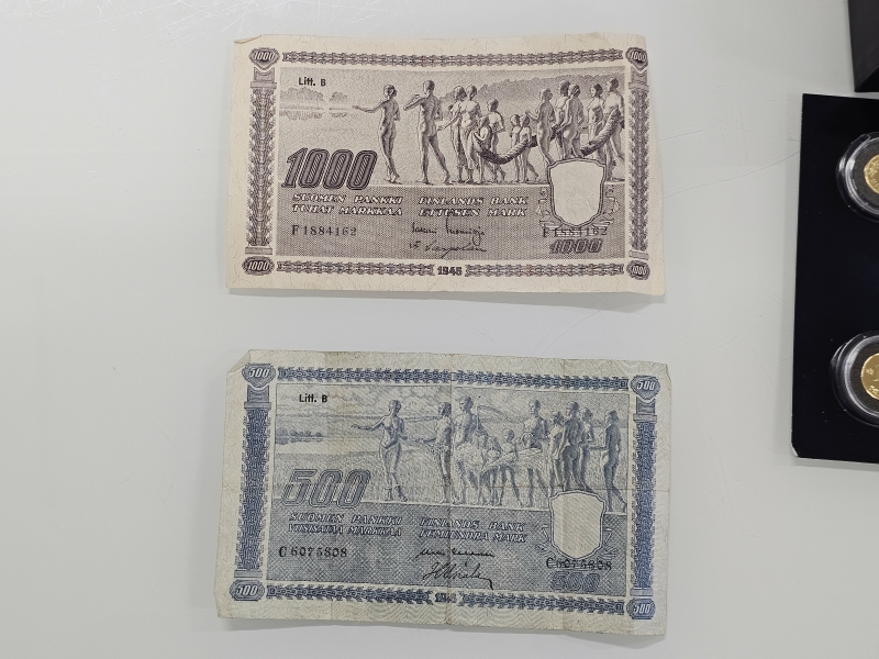 #1374 Erä vanhoja rahoja [mm. 1000mk 1945], Mannerheim -kokoelma ym.