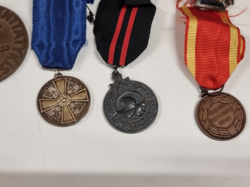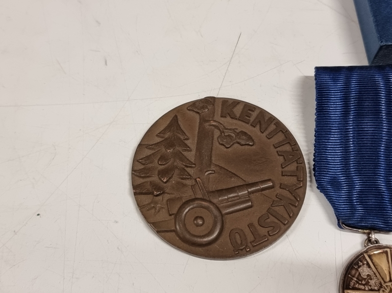 #1745 Erä kunniamerkkejä, mm. Kenttätykistön pronssimitali, 813h 15g