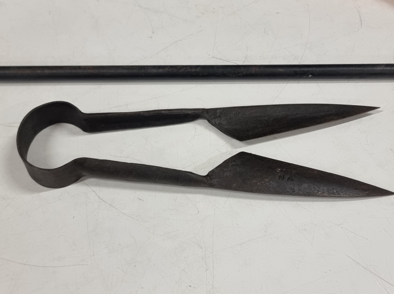 #2275 Puunkantoteline, kirves, hiilihanko ja keritsimet