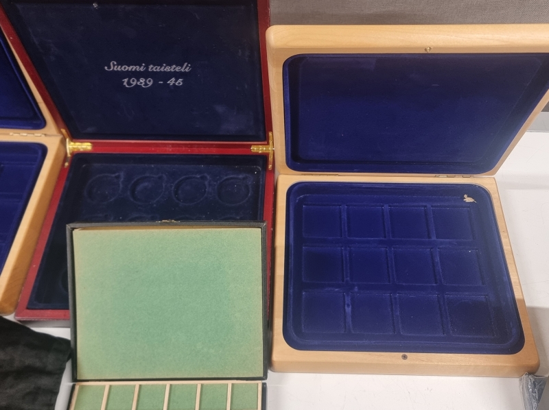#2309 Erä tyhjiä rahalaatikoita ja kansioita. Mukaan kellojen/korujen säilytyspussi