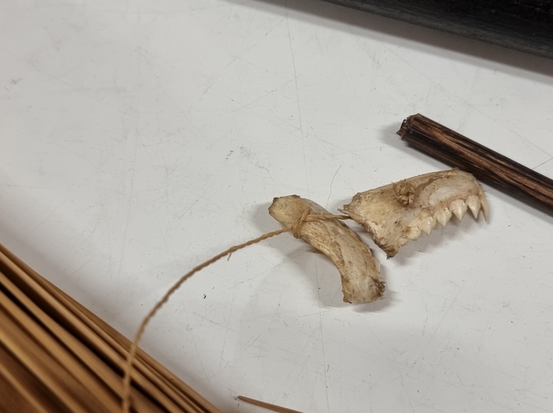 #1649 - Vanha metsästyspuhallusputki + tarvikkeita