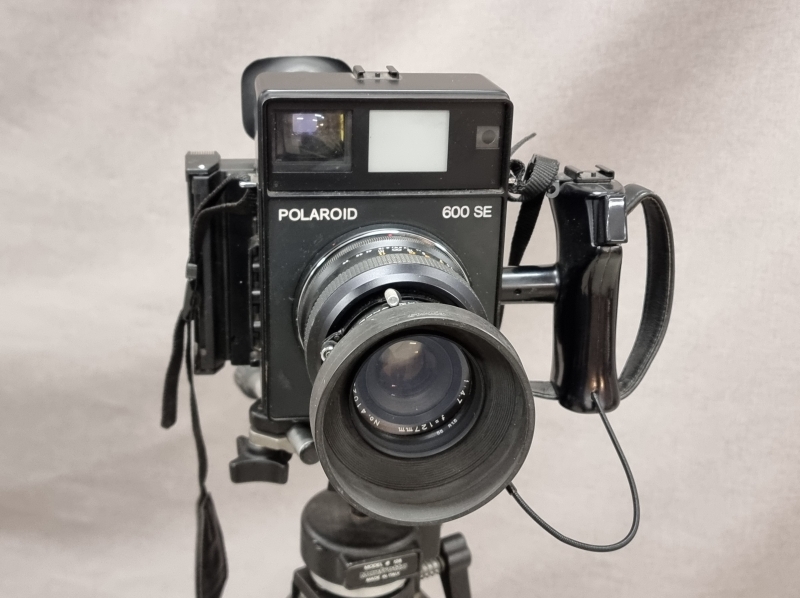 #2120 - Polaroid 600 SE kamera, jalusta ja säilytyslaukku