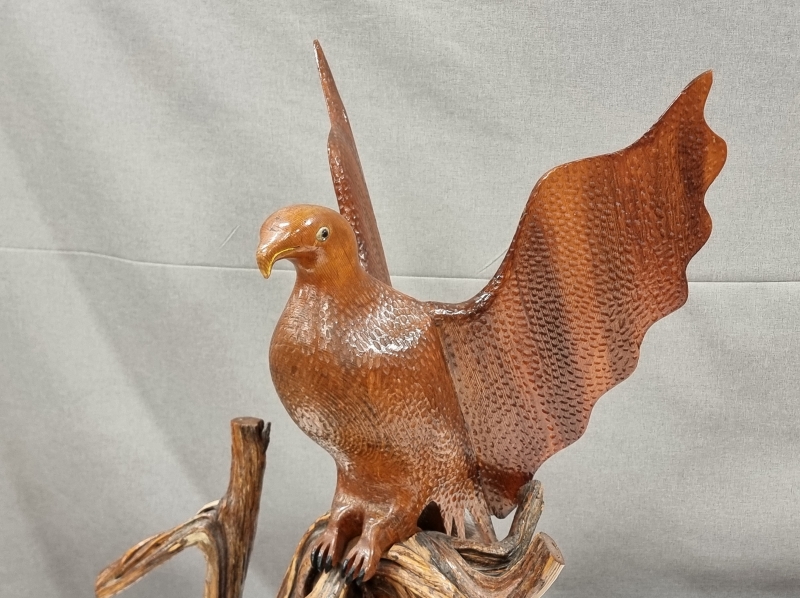 #2068 - Iso lintuaiheinen puuveistos sign. H. Nyström 1971