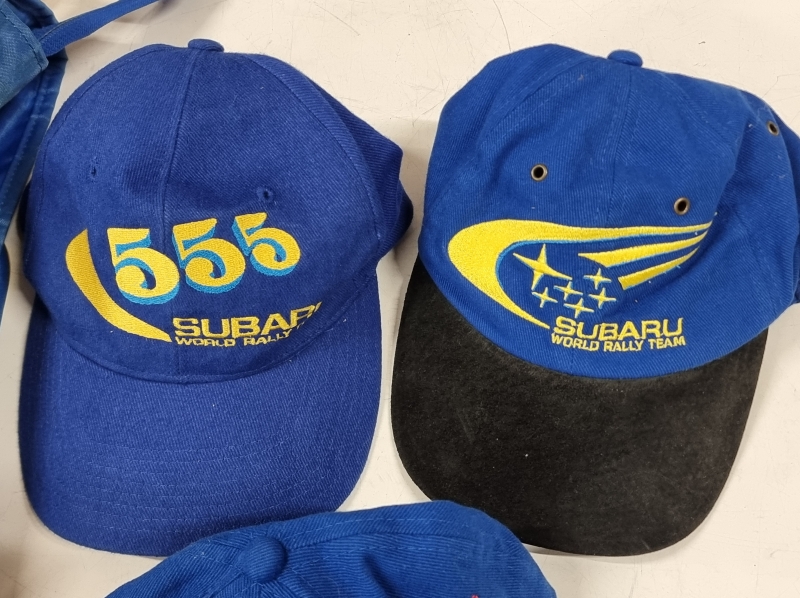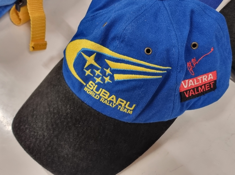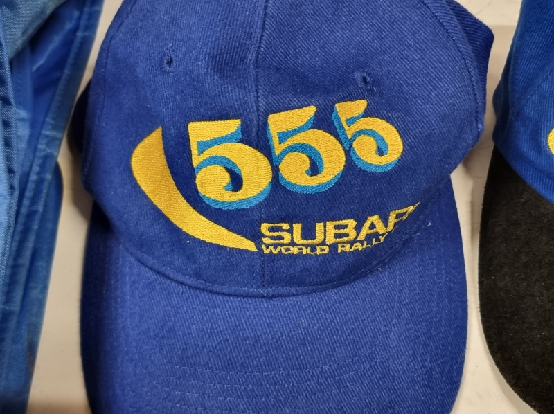#2109 Subaru keräilytavaraa: 3kpl lippiksiä + pukupussi