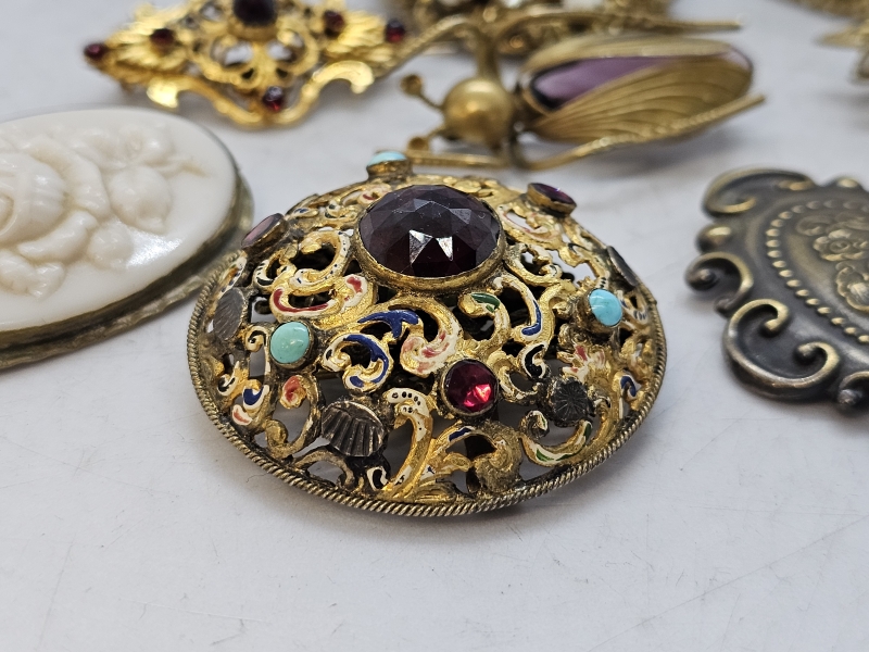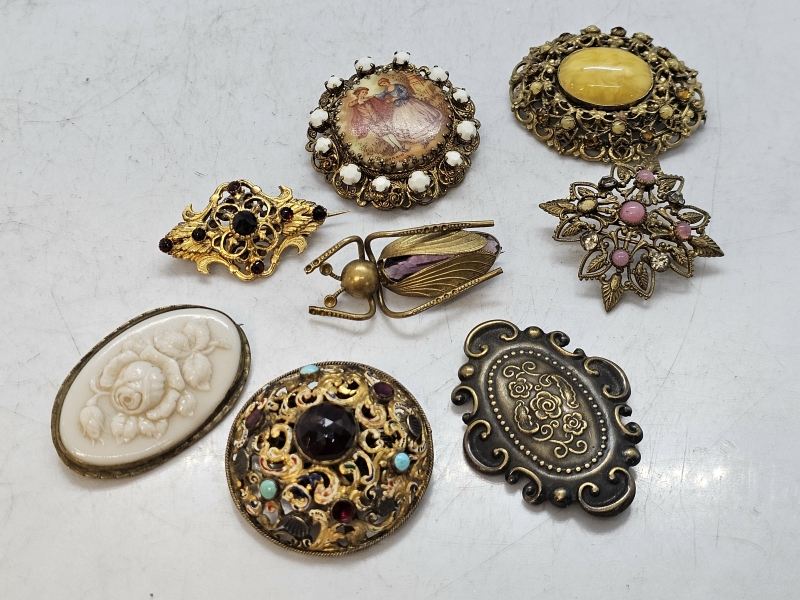 #1414 9kpl hienoja vanhoja rintakoruja