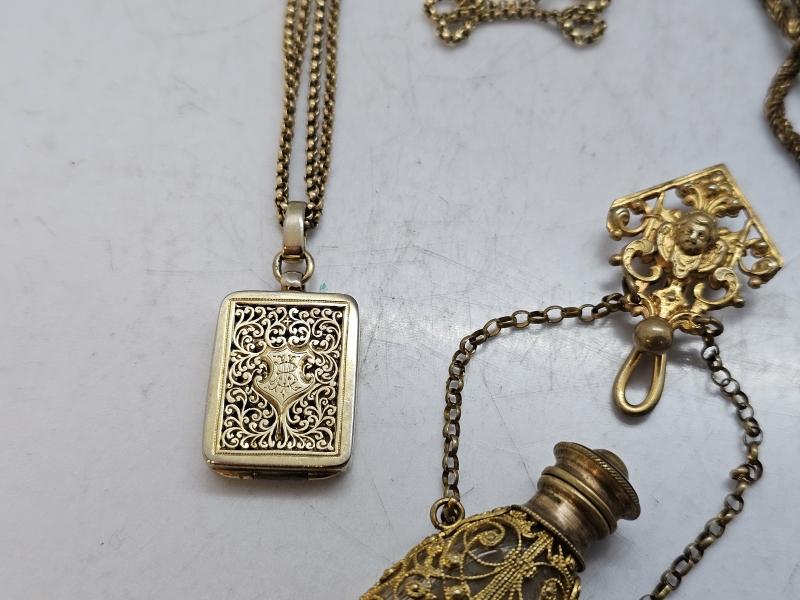 #1415 Erä koruja: Mm. 1800-luvun hajuvesipullo