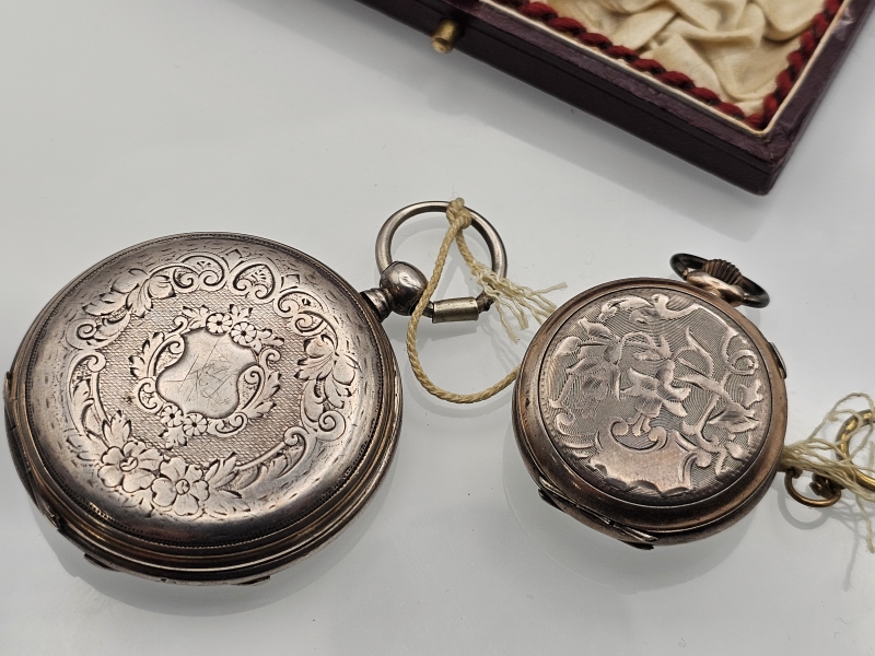 #1419 - 2kpl taskukelloja joista pienempi hopeaa