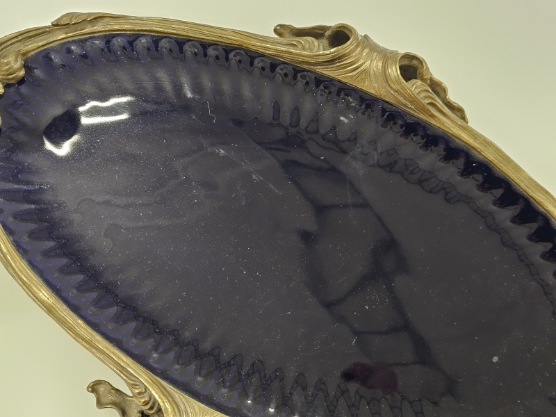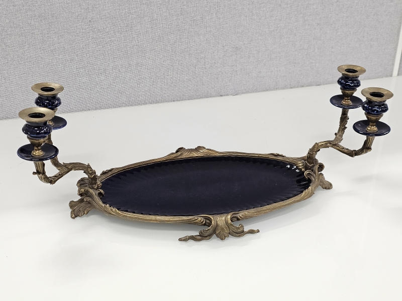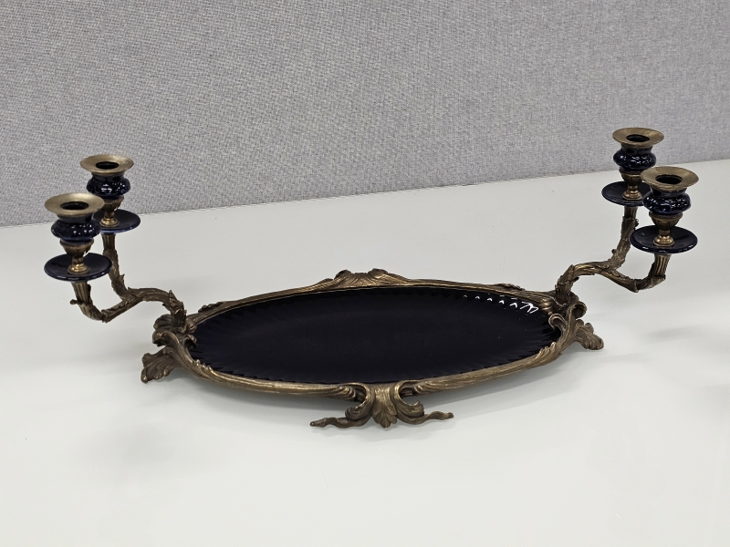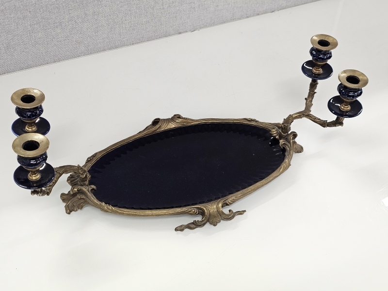 #1898 - Posliinipronssi pöytämalja kynttiläpaikoilla