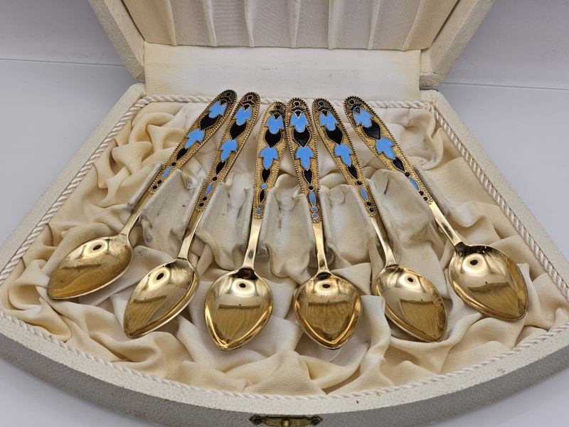 #1466 - Neuvostoliittolaiset emalihopea kahvilusikat, 875h, 87g