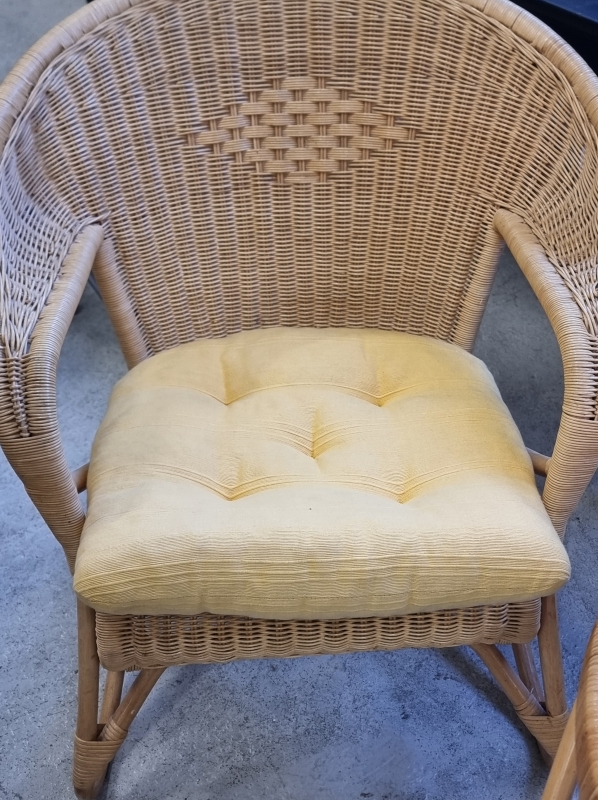 #2132 - Rottinkipöytä ja kaksi rottinkituolia pehmusteilla