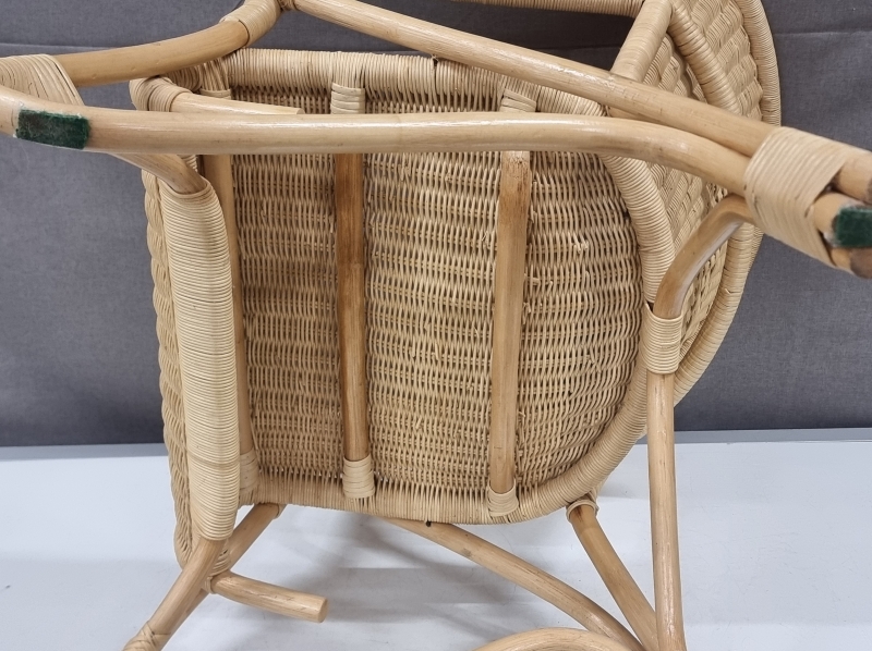 #2132 Rottinkipöytä ja kaksi rottinkituolia pehmusteilla