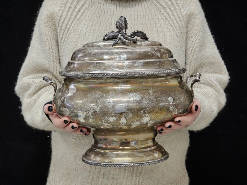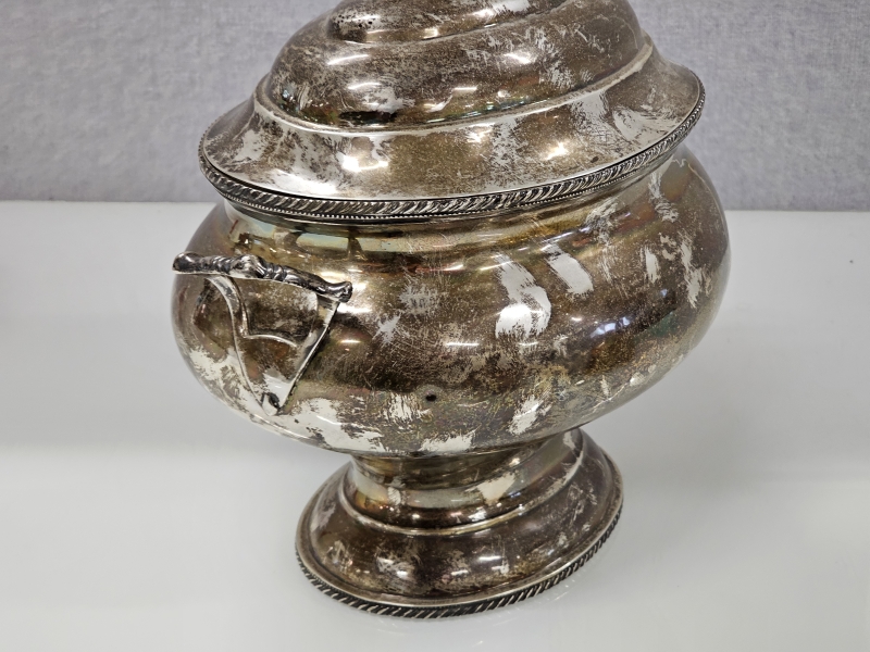 #1475 Isokokoinen hopeinen käsityönä valmistettu kannellinen astia, 925h, 2000g