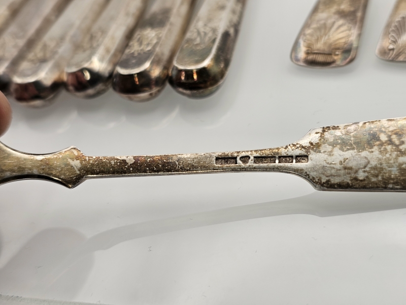 #1486 Erä hopeisia musla -ottimia, 813-830h, 93g + teräskärkiset 354g