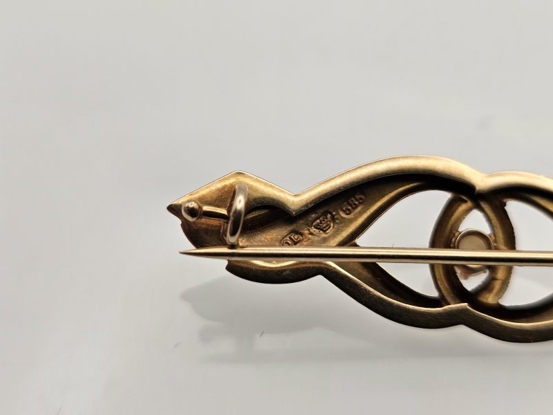 #1497 - 14k kultainen rintaneula helmellä, 2,12g