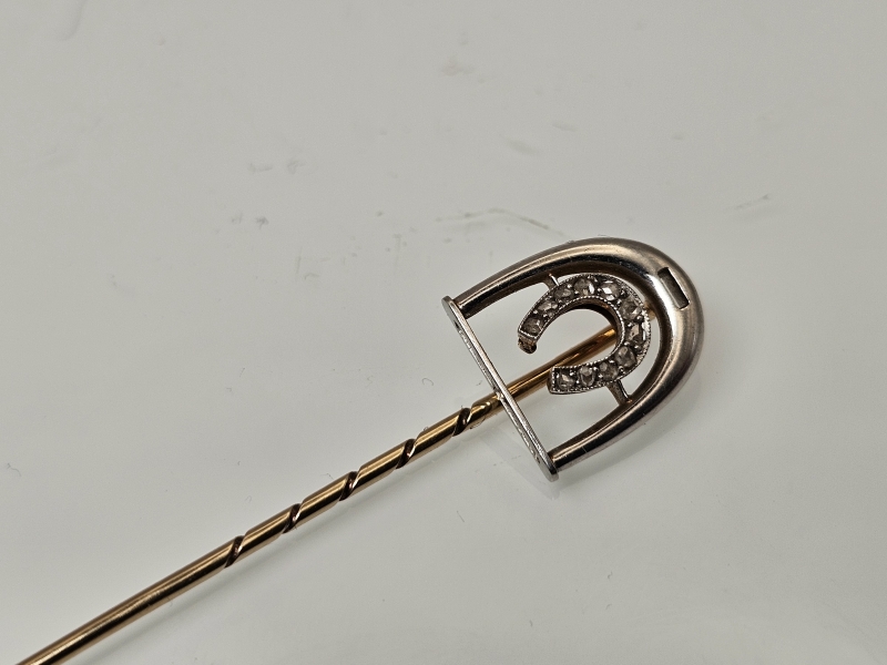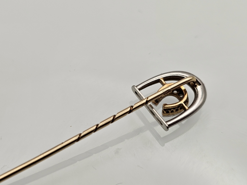#1502 14k kultainen / valkokultainen rintaneula timanteilla, 2,49g