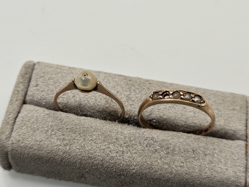 #1508 - 2kpl 14k kultaisia sormuksia helmillä, 3,04g