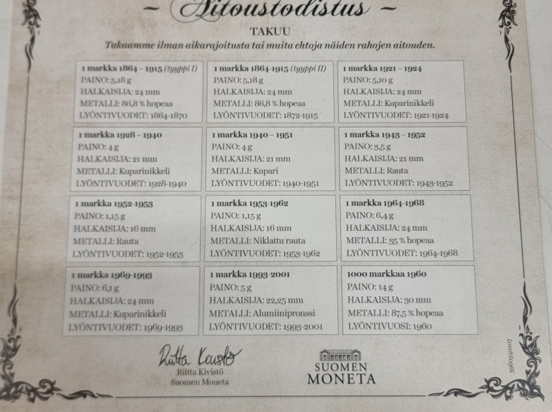 #1513 2kpl Suomen markka 150 v. rahasarjoja. 350-875h