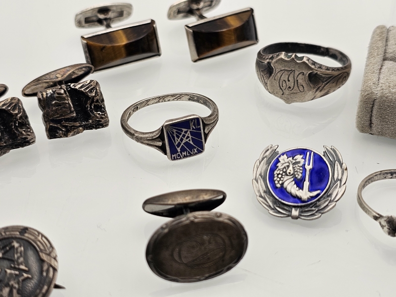 #1520 Erä hopeakoruja, mm. sormuksia emaleilla, 813-925h, br. 78g