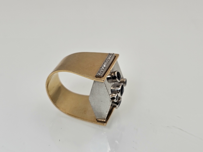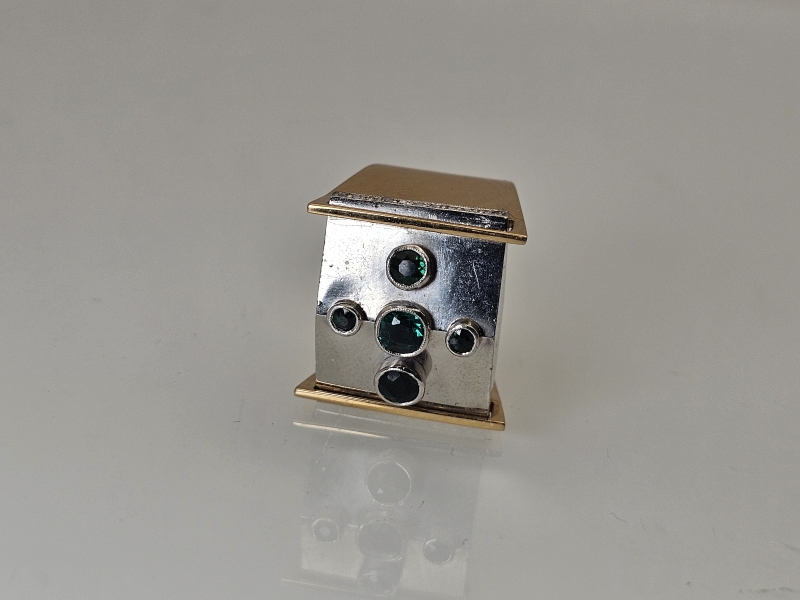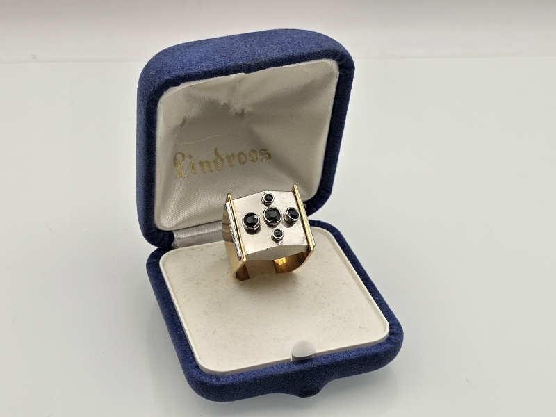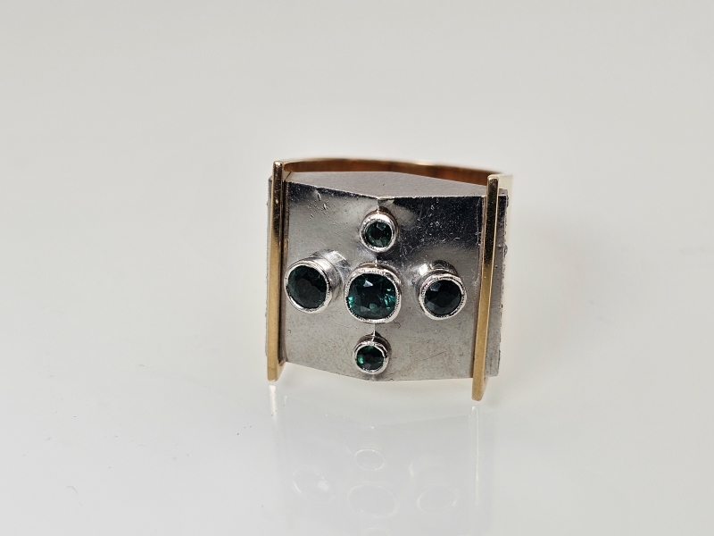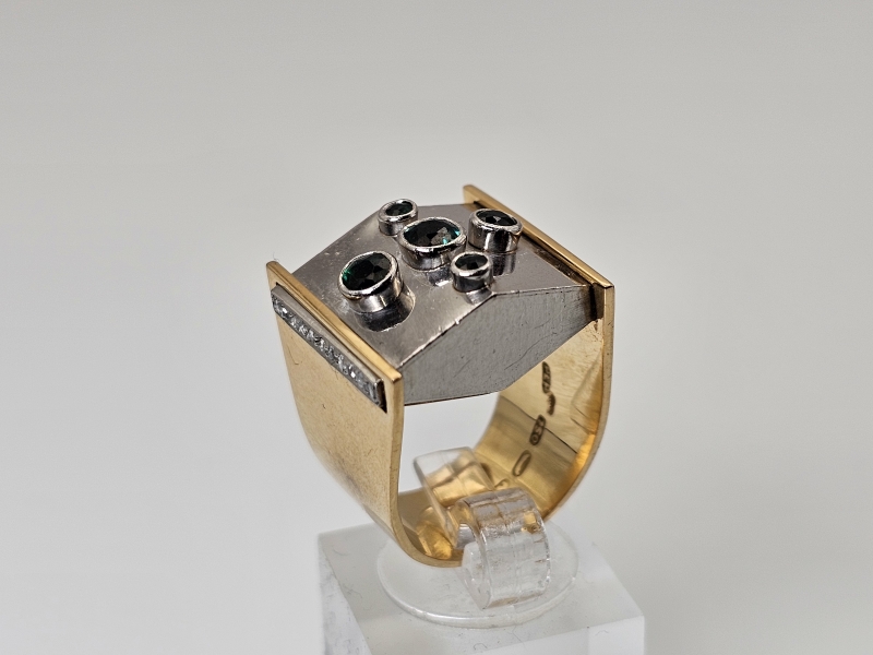 #1583 14k kultainen / valkokultainen sormus timanteilla ja smaragdeilla, Alppikulta Oy, 18,06g