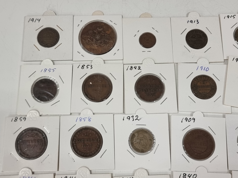 #2296 55kpl venäläisiä kopeekoita v. 1797 - 1915