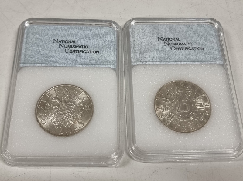 #1575 3kpl itävaltalaisia hopeakolikoita: 2kpl 25 shillinkiä + 1 kpl 2 shillinkiä. 640-800h