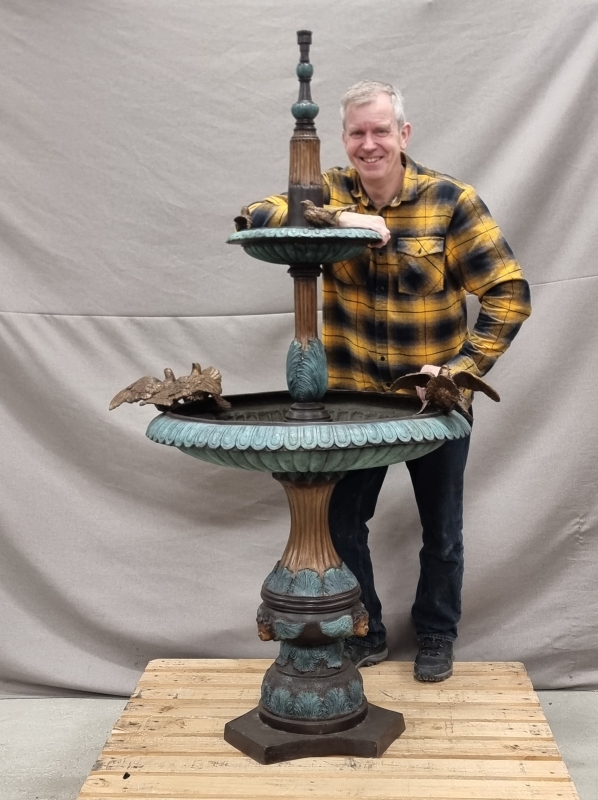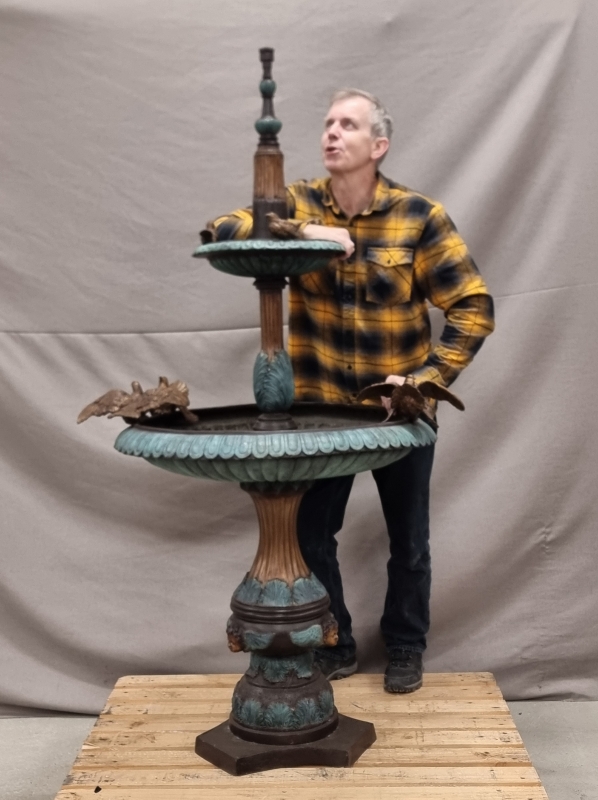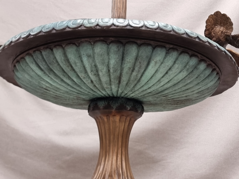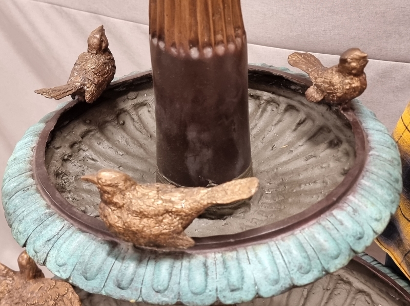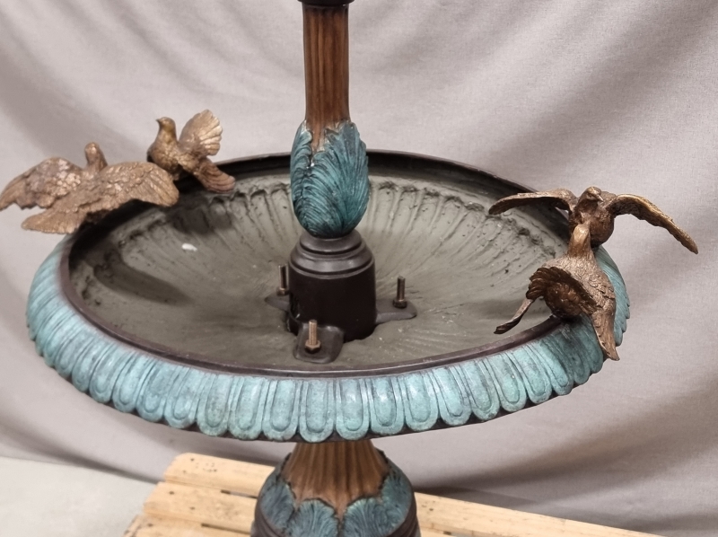 #1801 - Näyttävä pronssinen suihkulähde lintukoristeilla. 21-pisteisellä suihkupäällä