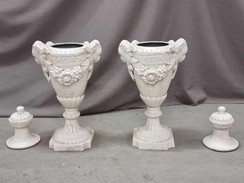 #1859 - 2kpl valurautaisia kannellisia ruukkuja