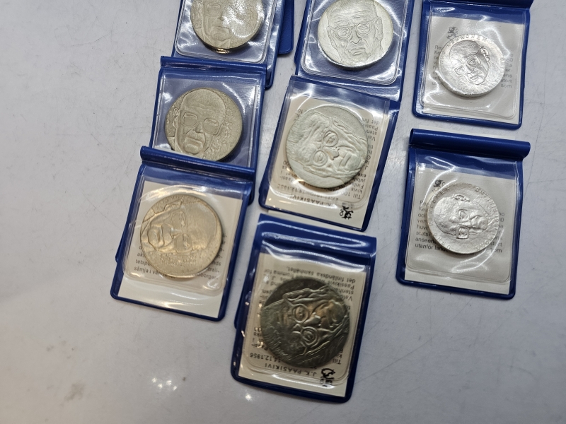 #1550 - Hopeisia juhlarahoja: 3+3kpl Kekkonen & 2kpl Paasikivi, 500h, 176g