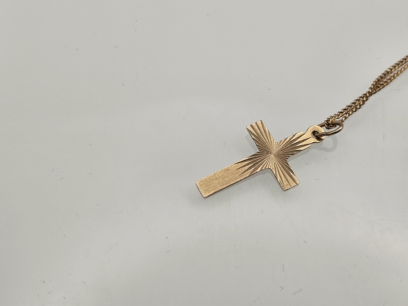#1549 14k kultainen ristiriipus ketjulla, 1,93g