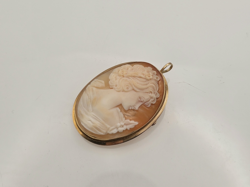 #1593 18k kultainen camee rintakoru / riipus, 6,86g