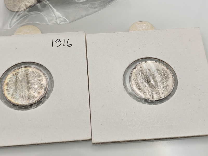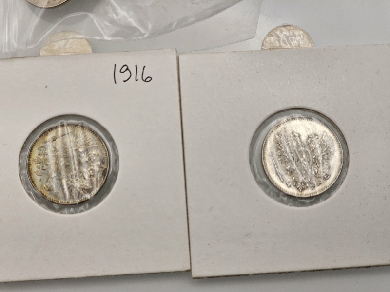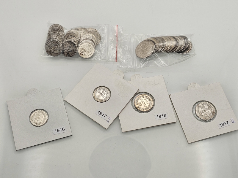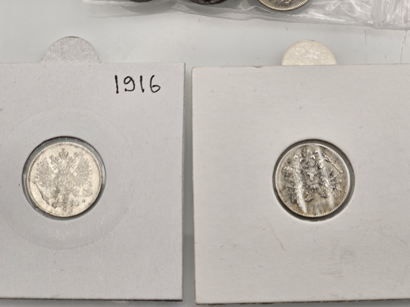 #1542 Hopeisia suomalaisia 25p, 50p rahoja, mm. variantit I ja II. 750h, 103g