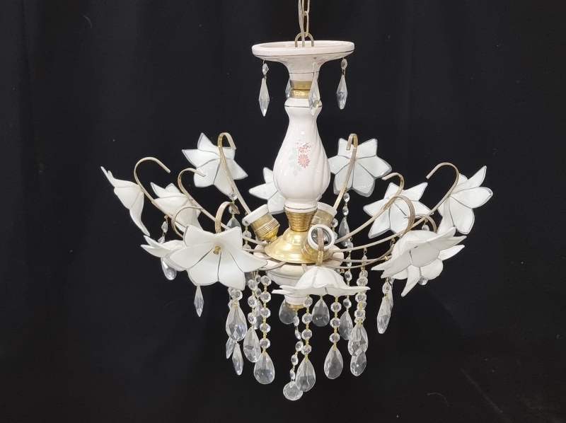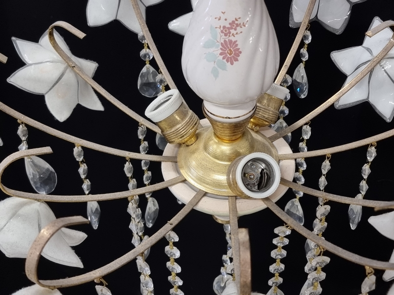 #2140 Kattovalaisin lasikukkakoristeilla ja kristalleilla