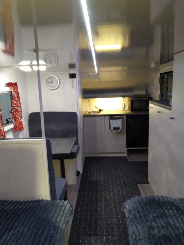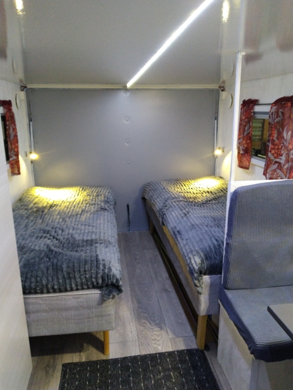 Vaunun kantavuus 500kg, kaasuton, kaikki toimii sähköllä, polttoainekäyttöinen lisälämmitin / sähkö.