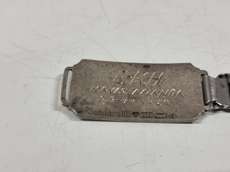 Hopeisten bruttopaino n. 110g. Painossa mukana myös ranneke joka ei hopeaa