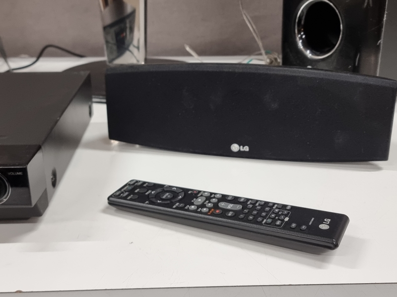 Toimivat, osassa suojamuovit päällä. Sivukaiuttimien korkeus 120cm